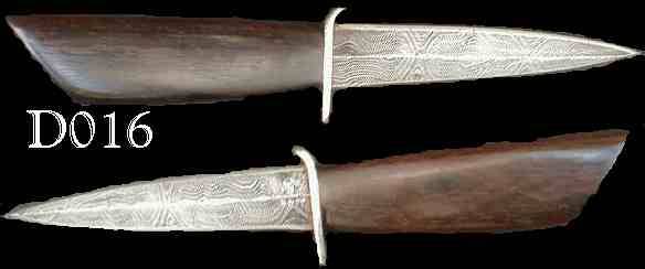 | Blade Characteristics Steel Type: Damascus Composition  : O1/L6/203E/WI Billet #  : 3-Sep Number of Layers: 416 Pattern: Ladder Etch: Medium Polish: Satin Dimension (inches) Length: 3.834 Max Thickness: 0.333 Min Thickness: 0.266 |