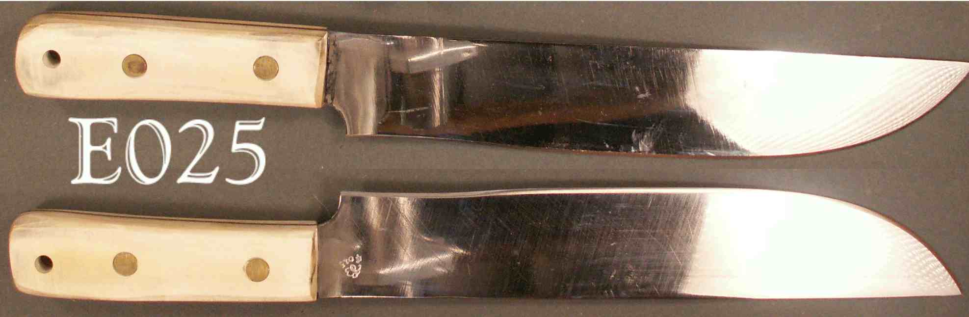 | Blade Characteristics Steel Type: L6 Composition  : Tool steel Billet #  : N/A Number of Layers: N/A Pattern: N/A Etch: N/A Polish: High Dimension (inches) Length: 8.75 Max Thickness: 0.055 Min Thickness: 0.055 |