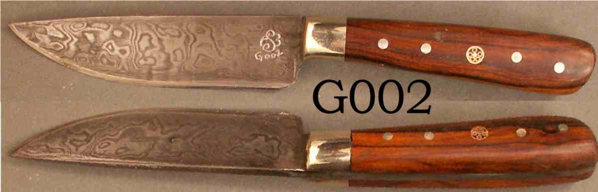 | Blade Characteristics Steel Type: Damascus Composition  : O1/L6/5160/203E/WI Billet #  : 1/21/2007 Number of Layers: 360 Pattern: Random Etch: Medium Polish: Satin Dimension (inches) Length: 3.924 Max Thickness: 0.174 Min Thickness: 0.068 |