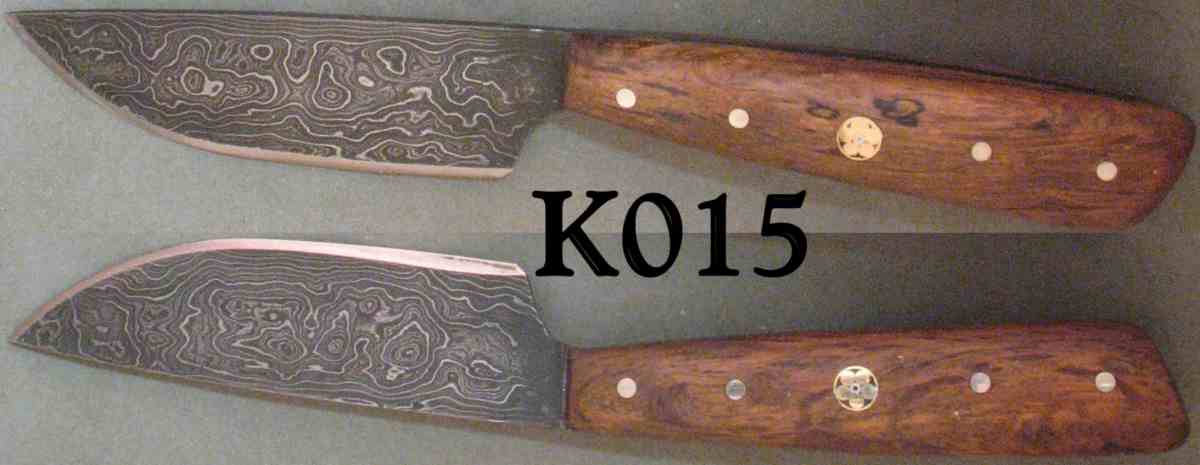 | Blade Characteristics Steel Type: Damascus Composition  : O1/L6/1095/203E/WI Billet #  : 1/15/2011 Number of Layers: 408 Pattern: Dolly Parton & earth Mother Etch: Medium Polish: 600-1200 Dimension (inches) Length: 3.8 Max Thickness: 0.1 Min Thickness: 0.078 |