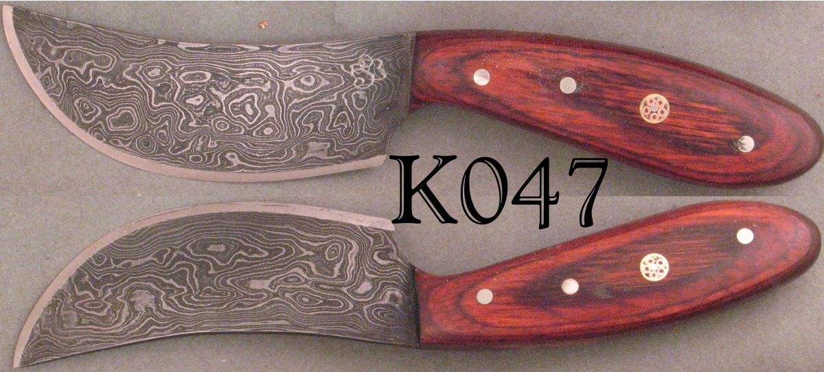 | Blade Characteristics Steel Type: Damascus Composition  : O1/L6/203E Billet #  : 4/16/2011 Number of Layers: 408 Pattern: Dolly Parton Etch: Medium Polish: 600-1200 Dimension (inches) Length: 3.3 Max Thickness: 0.12 Min Thickness: 0.07 |