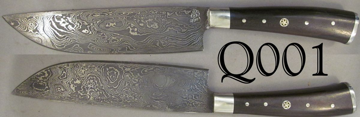 | Blade Characteristics Steel Type: Damascus Composition  : O1/L6 Billet #  : P09 Number of Layers: 156 Pattern: Madona Etch: Medium Polish: Satin Dimension (inches) Length: 7.4 Max Thickness: 0.076 Min Thickness: 0.049 |