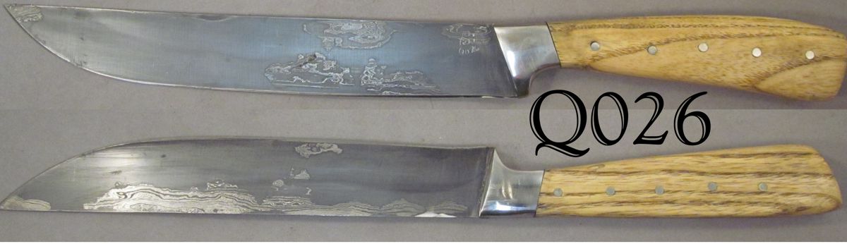 | Micronesia series =san-mai construction - 1095/nickel over an O1 core. Very thin blade & storage box is spalled pecan (See Q025) - family gift |