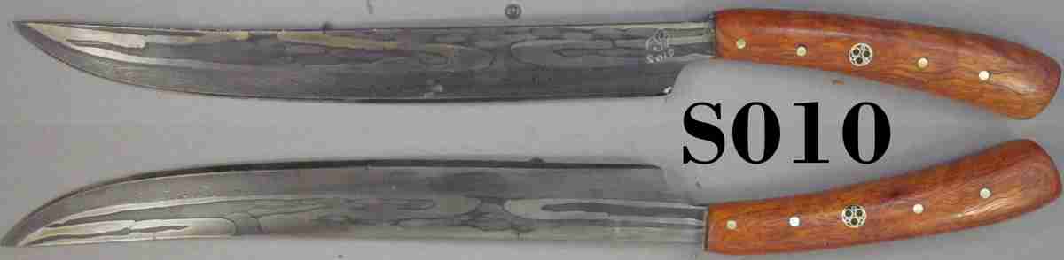| Blade is composed of two bars - the lower a 204 layer Damascus and the upper of L6 & 1084 powder with the L6 in a basket format Sold on 4/3/2023 for 0200 |