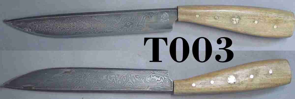 | Blade Characteristics Steel Type: Raindrop Composition  : 1075-8670 66 layers Billet #  : n/a Number of Layers: n/a Pattern: Raindrop Etch: Medium Polish: Satin Dimension (inches) Length: 6.9 Max Thickness: 0.254 Min Thickness: 0.109 |